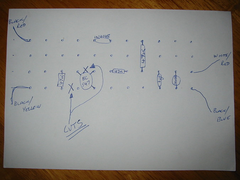 I've never done any electronics before but this exup circuit looks worth a try. I did a bit of reading on simple circuits and fitting the components correctly so now I've drawn the components as if I were fitting them onto stripboard. Can anyone tell me if I'm going about this the right way or have I completely screwed it up?