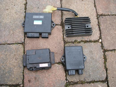 CDI, top right is the reg/rec, bottom left is a fuse box and bottom right is a spare box, if memory serves its not off a zx9. Can anyone confirm these