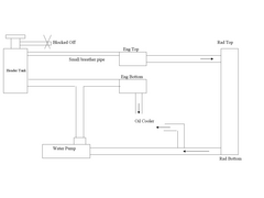 Botom engine is botom radiator small exit on radiator is for the oil heat thing....??