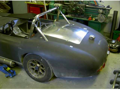 Im guessing that the weight would be around 550kg. Afterall is just like a SWB 2cv with an engine conversion, Fisher Fury with hardtop or a Z-cars