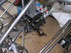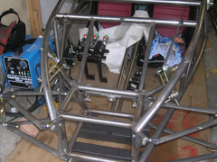 The chassis is not fully welded yet as I want to make sure that everything fits and work together first. Now the pedals are in, the coloum is next. I