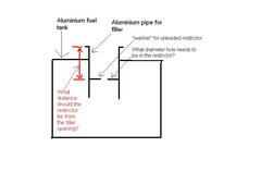 1, What size should the "unleaded restrictor" be in the filler neck/ tube?