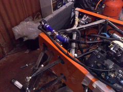 small water pump hose. The header tank on the bike connects to a small hose at the top of the rad and also has an overflow pipe that hangs out the