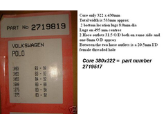 from an Escort. It's about 51cm tall and about 43cm wide. The hot inlet is on the back of the radiator, top left (as looked at from the back),