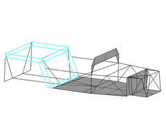 The blue lines show the engine bay and seat back main tubes which are 4x2 - 14g (100mm x 50mm - 2mm wall) which get the chassis around the engine in a
