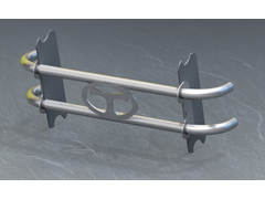 The two large plates are welded to the frame between the upper and lower front tubes. The bars assembly justs bolts on.
