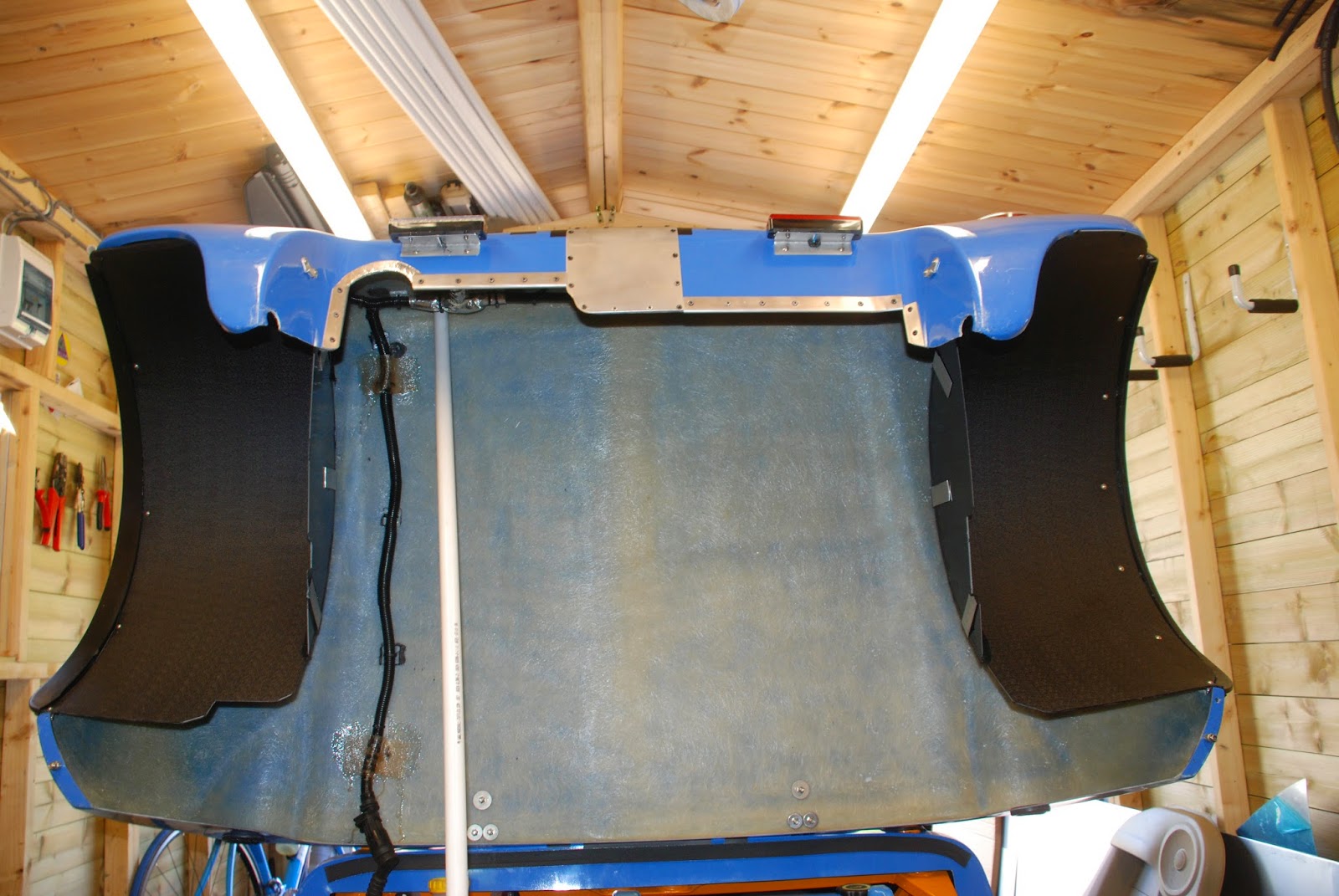 wheels, I finally settled on making up some inner arch sections that are contained within the rear clam. Now it's finished, it seems to work