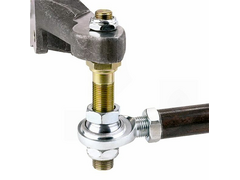The relative position of the rod end on the steering arm can be adjusted by winding the jam nuts up or down.