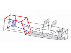 engine bays. The two arches at the scuttle are my attempt to make the dash ect structural. The blue bits are a wishbone arrangement and the vertical