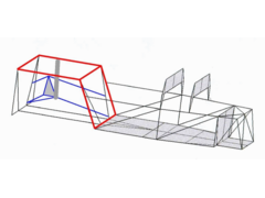 My earlier chassis designs were all front engined ones with the best being the double Y brace version shown in the pictures section. More than double book stiffness, engine bay bracing that can be made to go round engine parts (a common problem with the simple "book" diagonal) and slightly lighter.