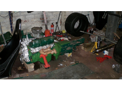 notice distributor cap and twin port exhasut manifold and V shaped engine mated to a Ford gearbox - perhaps a Ford V4