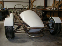 I got the bonnet (hood) and wings (fenders) done and also mounted the radiator...pushing harder now to get all the chassis mounted bracketry done so I