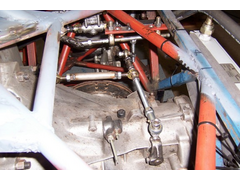 swivels on its own axis on the forward rod. the conection to the trans would be a simple lever with the control rod mounted firmly in a bearing to