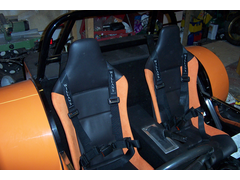 I used seats from a Lotus Elise, had a mate put thicker foam on butt part and he then covered in orange Alcantara and blick Vinyl