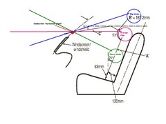 The windscreen “horizontal plane” is at the point where the projection of line ‘C’ intersects the windscreen / windshield, or if above the windscreen