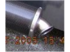 The end cap is aluminium (I cut off the outer ali shroud), but the inside exit pipe is mild steel, I welded on a stainless 90 degree bend with a