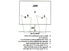 It's very important that the car is at right angles to the wall and still in line with the original marks.