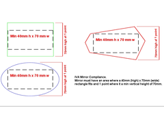 An exterior mirror must be a minimum of 40mm high and 70mm long,and be able to incorporate a measurement parallel to the height of the rectangle at