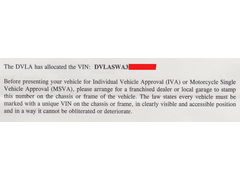 i stamped min onto a piece of 3mm steel and welded it to the chassis. mr vosa and dvla were both happy with it.