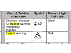 doubting myself now, but it is normal on modern cars to have both l&r dash indicators showing with hazards, but the manual seems to require red