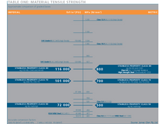 This table shows the different properties of stainless and high tensile steels.
