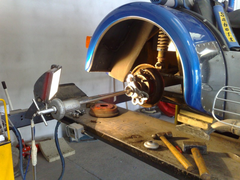 I removed the wheel, the drum, the 4 set screws which hold the retaining plate, attached the slide hammer...