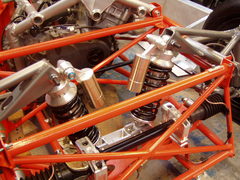 So I got to wondering if I could use it (and another) on the front of the trike!? Thing is, the upper mount is designed for one of BMW's paralever doo-dahs, so would need some sort of 'collar' machined that would clear the adjuster and connect rigidly to a clevis-style assembly. Anyone got any design ideas?
