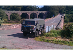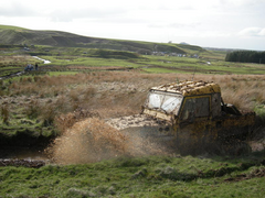 Try the Landrover 101 - It is hardwork trying to Parallel park it with no power steering. Tyres 36" Diameter