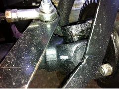 Looks like the joint has been articulated to the extent the nipple has fouled the yoke, take the nipple out and plug the the hole with a grub