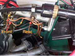 going to the drivers side and 1 port on the side closest to the driver going to the rear with a T piece just behind the diff