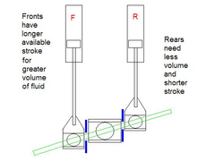 Gives much longer stroke available for the fronts. The rears tend to go solid on a small movement of the pedal and the fronts need a much longer