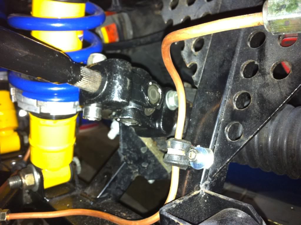 Cut off the old bracket thats welded to the steering rack extension tube.