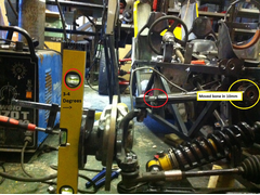 I noticed the wishbone brackets I bought are the 44mm locost ones bent to the 38mm size so the hole is 13mm too high meaning the top is pushed out by