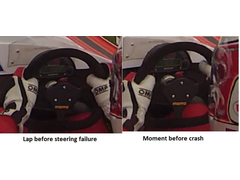 the UJ off the rack!! The 2 freeze frames from my video show that the steering wheel had moved further from the column just before the crash.