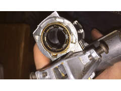 look tonight but having managed to remove the cast alu ignition block from the black sleeve, I notice that the bearing closest the steering wheel is