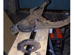 I cut the ends of the Sierra trailing arms off, and welded them into holes cut in the steel plate.