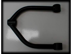 On the top wishbone a curved design has the advantage of giving a better weld geometry for the top ball joint tube -- the book design is not the