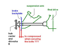 securing the hub carier and brake backplate to the lower suspension arm, the two driveshaft joints of the shaft will be compressed (spring inside).