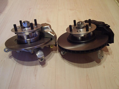 I have a pair of GT6 uprights fitted with ally hubs (4 stud Ford) and new 266mm vented discs with refurbed GT6 calipers, inc new wheel bearings. They