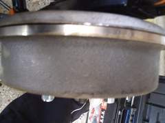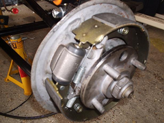 Is that the passenger side rear? If it is then it seems the leading edge for shoes is wrong??? You could try leaving drum off and use washers of same