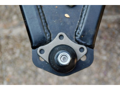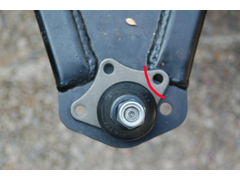 2: i'd cut the third mounting hole on the ball joint housing (red line on pic) and just drill one hole on the wishbone: