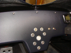 has the indicator stalk holes in not sure how to do it maybe glass over the holes smoth off and paint black before a wrap with carbon