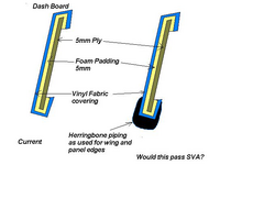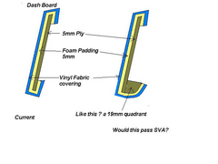 for sva, David J has very kindly had a look at the car yesterday and informed me that the padding had to be hard padding to pass, or it should have a