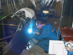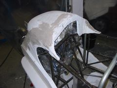 Here I´m welding om a TEMPORARY steel plate- so I have a smoth side panel I can make a mould of.
