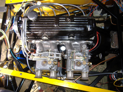 I finally got aroud to finishing off the carbs, rejetting them and fitting them to the engine. Its filled one side of the engine bay out nicely. Just