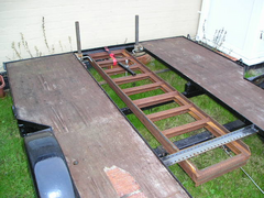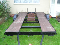 converted caravan chassis which is very strong. It is 40 x 40 x 4mm angle welded to the chassis.