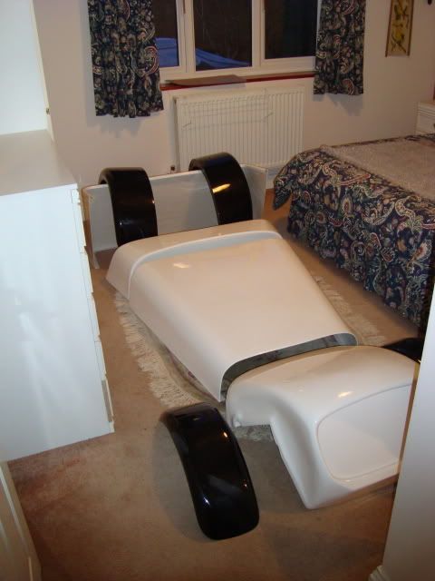 White with black arches. Brand new, as removed from packaging, only selling as it turns out our chassis isn't quite Locost dimensions. Good