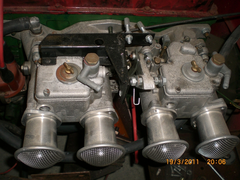 As you see here, whole thing, 2 carbs, trumpets, manifold and throttle mechanism + the dual throttle cables you don't see. Notice too I've