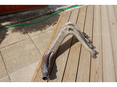 rather than through the side. It is also wrapped with exhaust wrap. The output pipe is slightly shorter and has some left over weld as I had a Cat