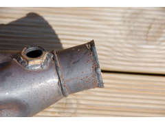 welded on (this is removed and not included in the sale). Output size is 2". There is also a boss for a lambda sensor (include a plug if this is